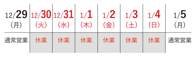 2025年12月-2026年1月 カスタマーセンター年末年始休業のスケジュール